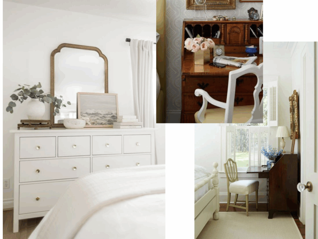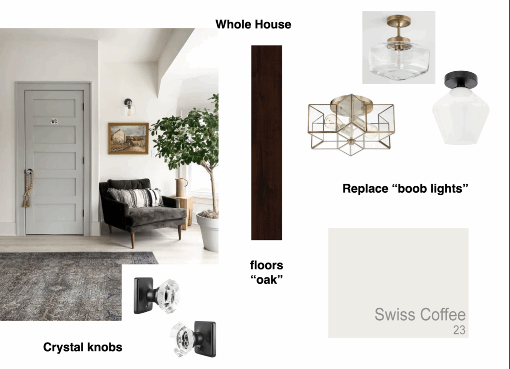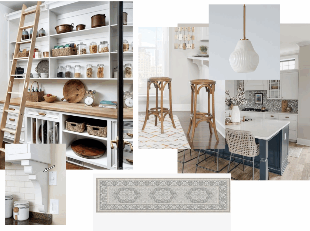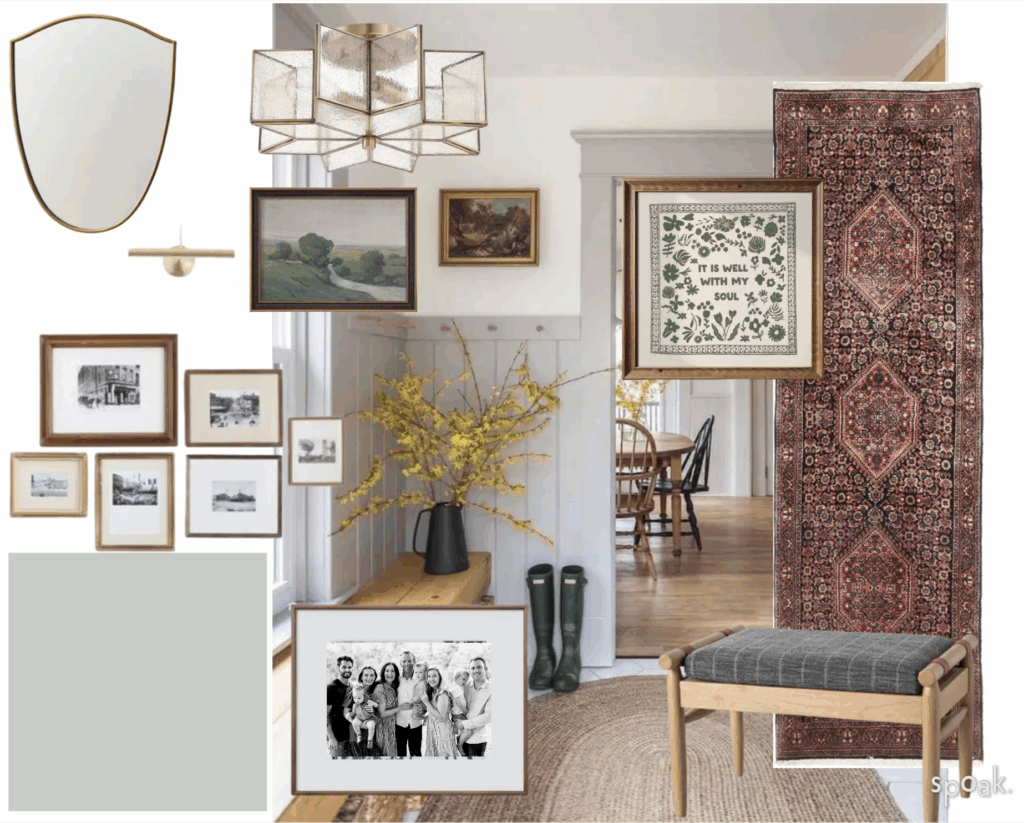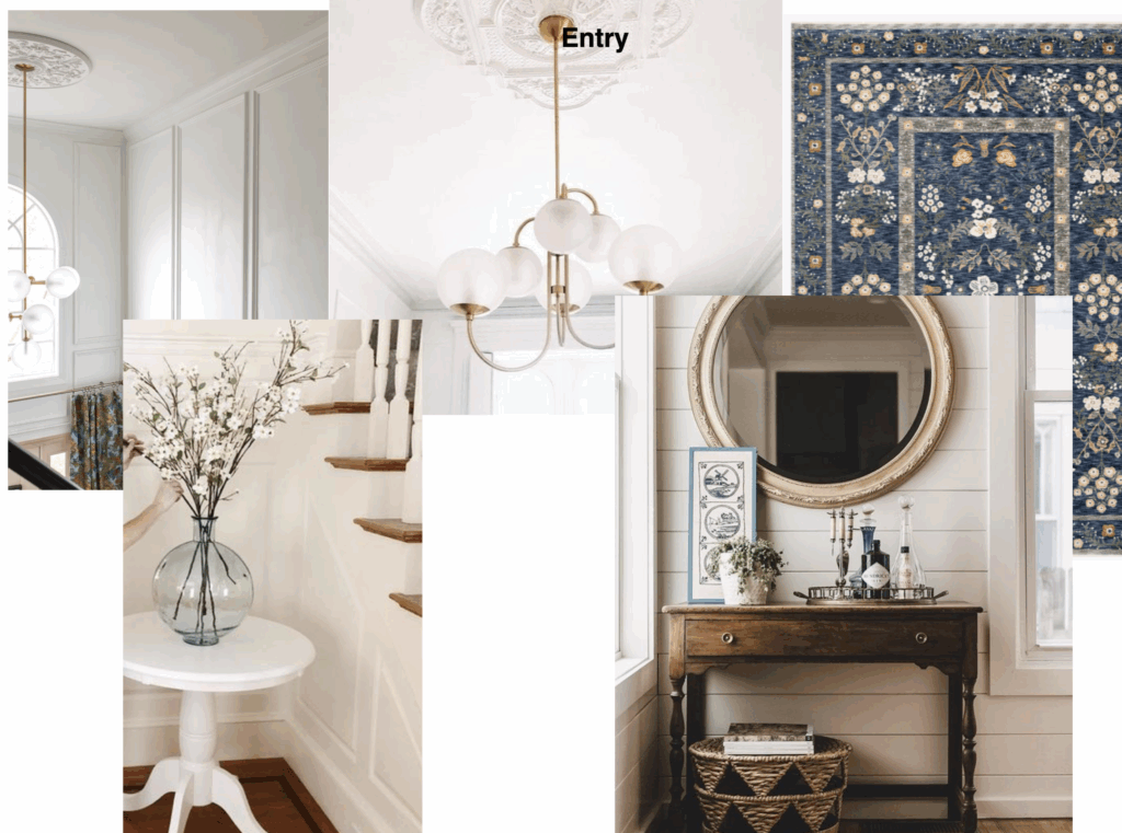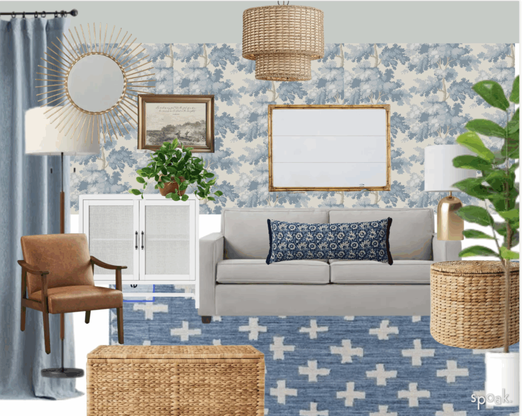If this part feels tricky, don’t worry — this is one of my favorite steps to help clients with! I often create custom mood boards that help them see the full picture before buying anything. It’s amazing how much more confident you’ll feel once you can visualize your plan. Here is an example of a mood board for a room I have made for my clients: